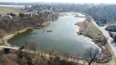 Duża działka o pow. 4,6 ha (46160 m2) praktycznie w całości stanowiąca zbiornik wodny znajdująca się przy drodze ...